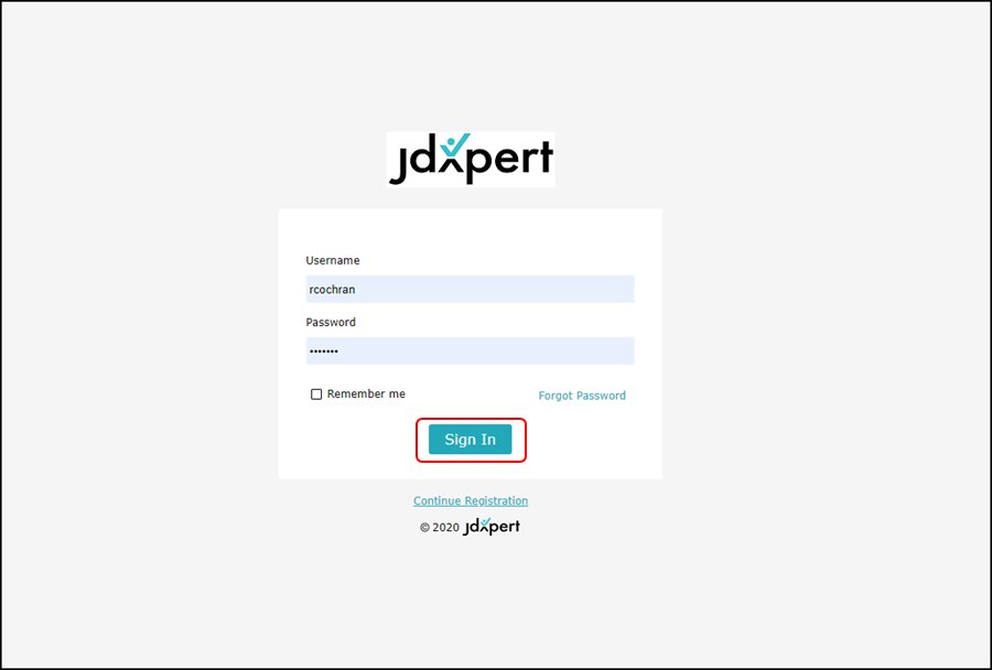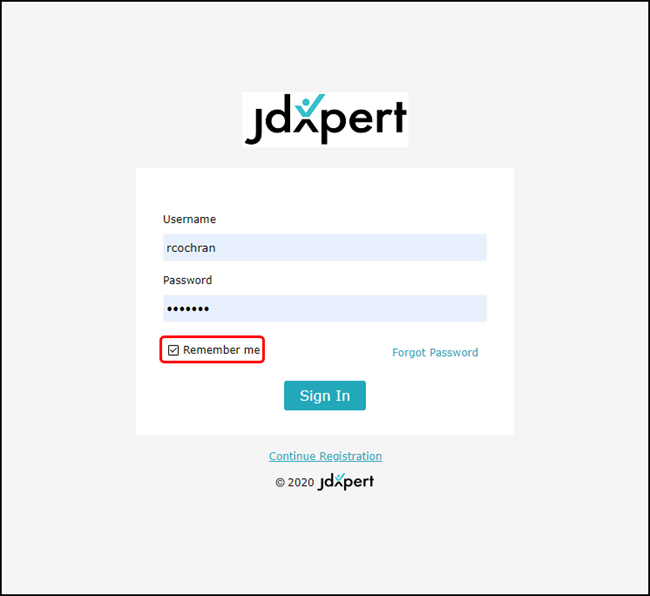 3. Select the Remember me check box, if you wish to remember the credentials.