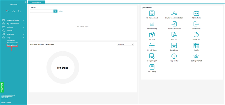This displays the Getting Started tab: