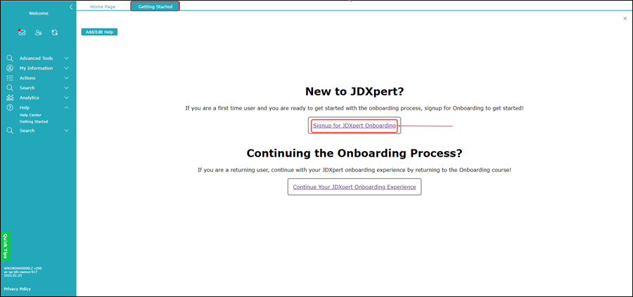 2. Click Signup for JDXpert Onboarding.