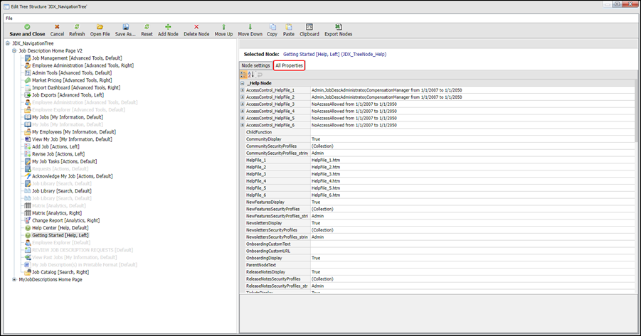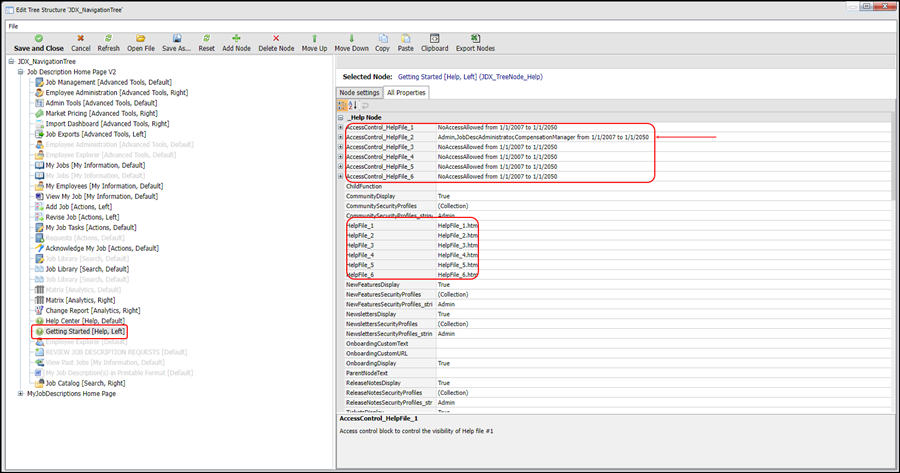 3. Set the access control of all properties to NoAccessAllowed except where the help file is required as follows: