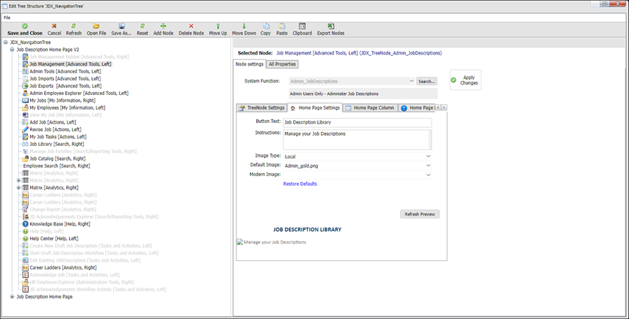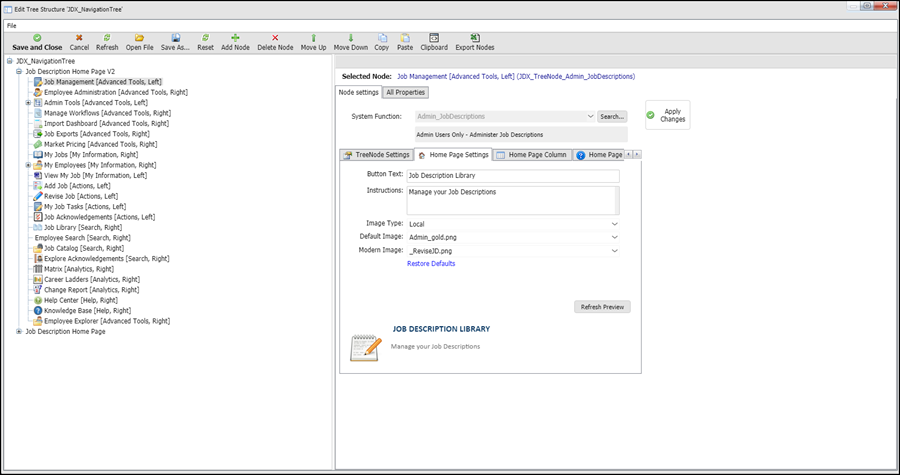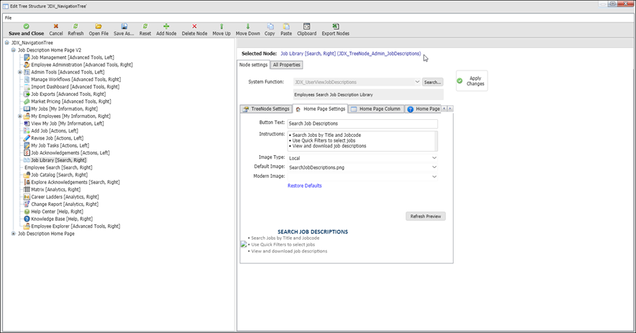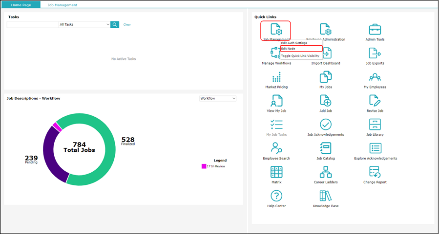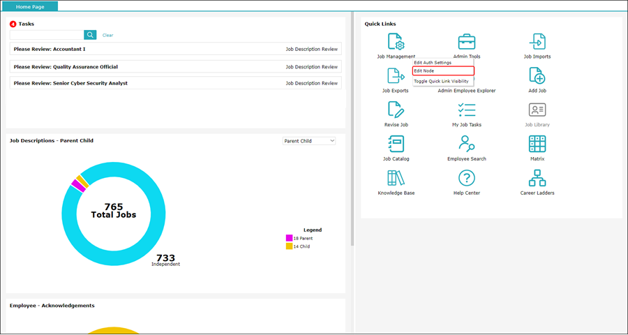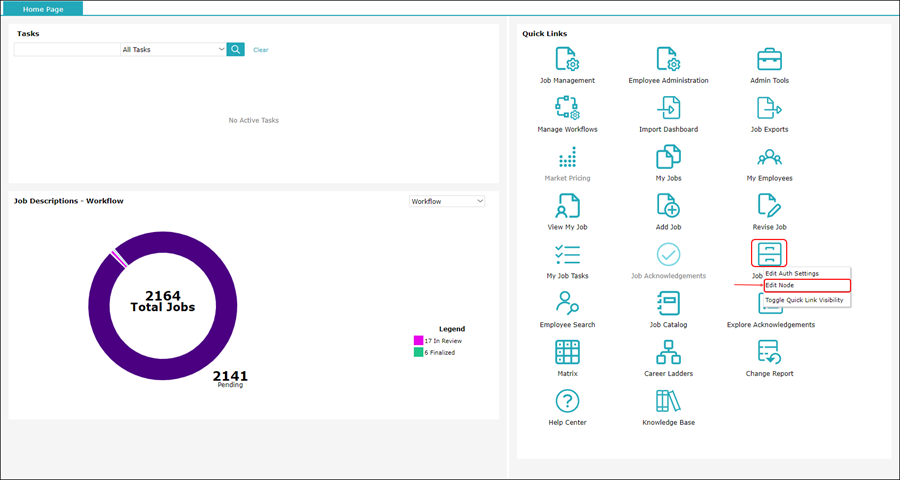 1. On the homepage, in the Quick Links section, right-click the Job Library icon and select Edit Node.