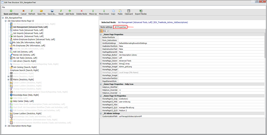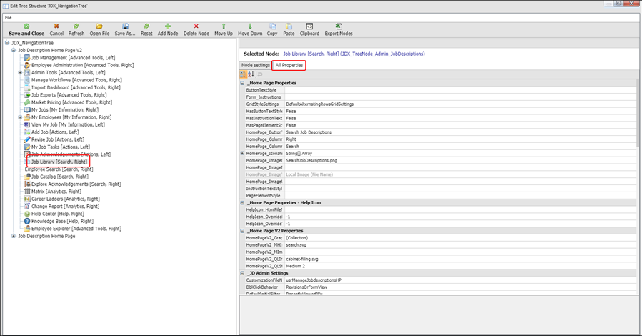 2. Select the Job Library node (if required) and click the All Properties tab.