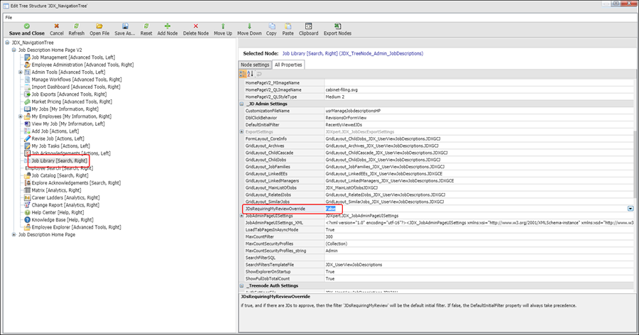 3. Set the JDsRequiringMyReviewOverride property to False as shown in the following figure: