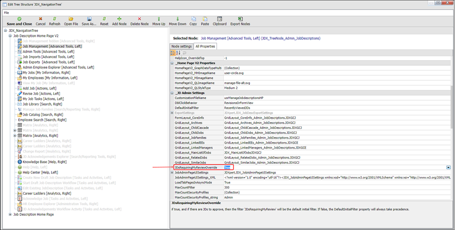 3. Set the JDsRequiringMyReviewOverride property to True as shown: