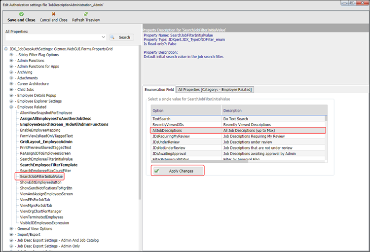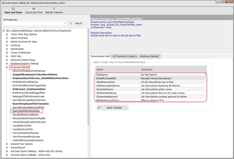 5. Select the SearchJobFilterInitialValue property: