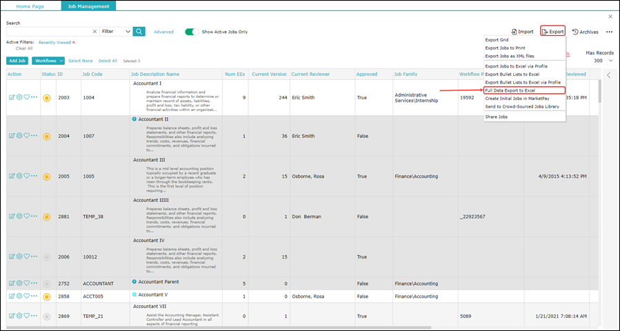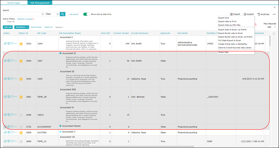 3. Select the jobs in the grid if you want to export the selected jobs.