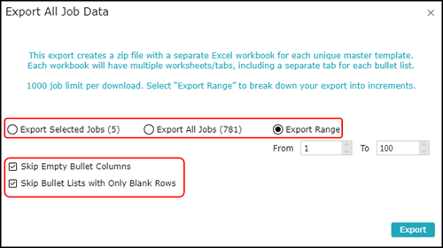 Export Range – To export the range of jobs (range is decided by job id)