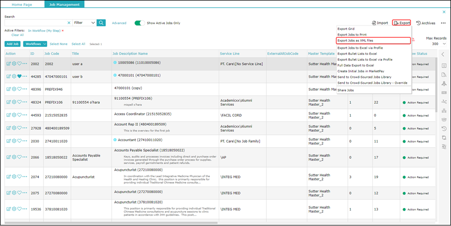 3. Select the jobs in the grid if you want to export the selected jobs.