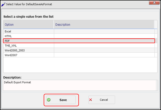 The default value is updated to PDF. Now, all jobs will be exported in PDF format.