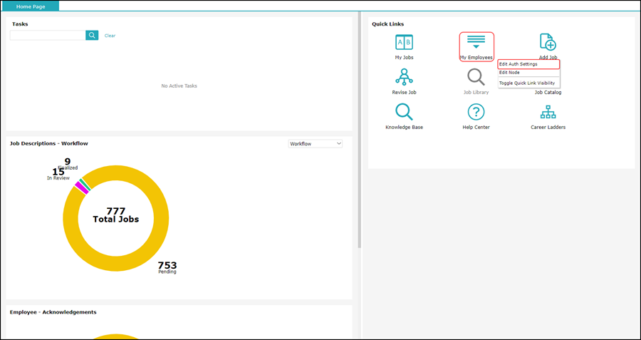 2. Right-click the My Employees icon in the Quick Links section, and select Edit Node.