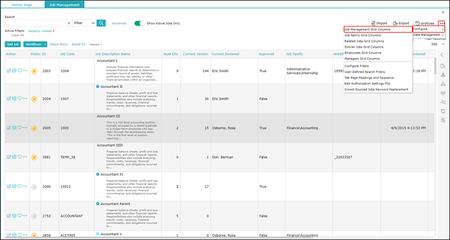 2. Click More, point to Configure, and select Job Management Grid Columns.