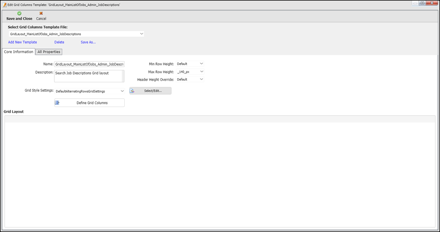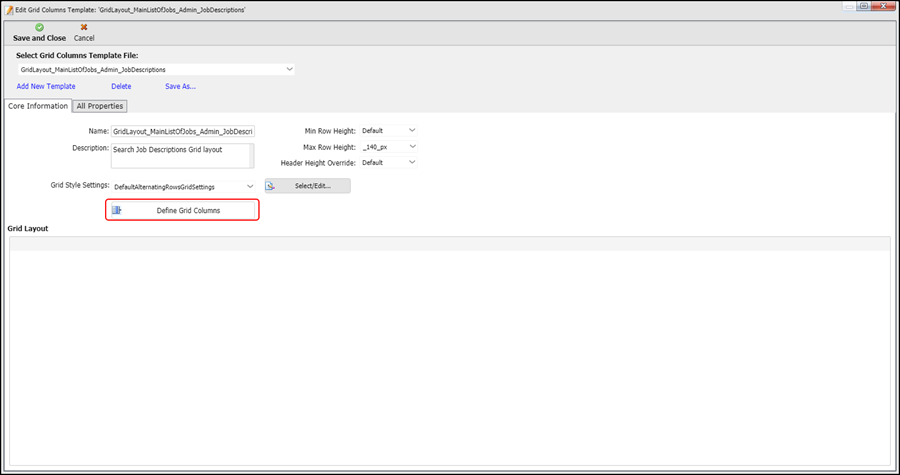 This displays the Edit Grid Columns Template screen: