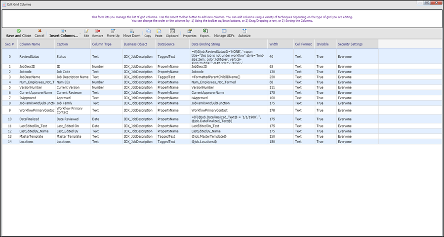 This displays the Edit Grid Columns screen: