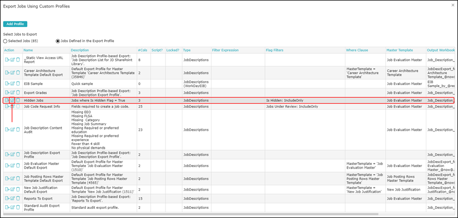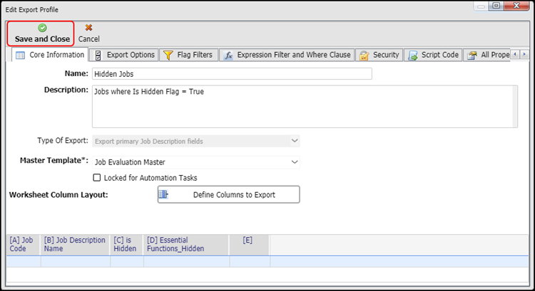 20. Click x to close the Export Jobs Using Custom Profiles screen.