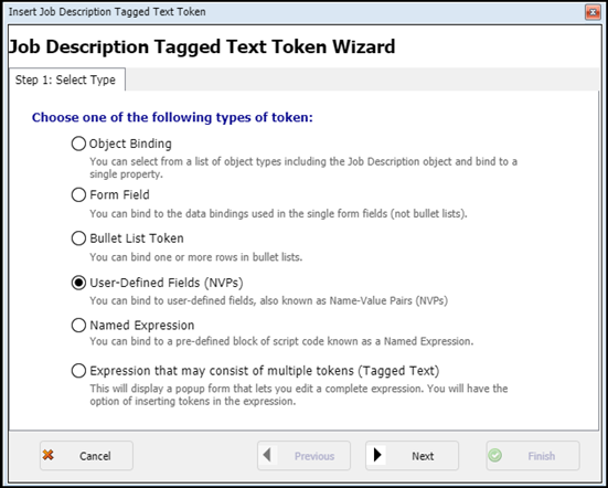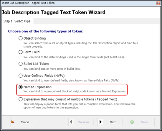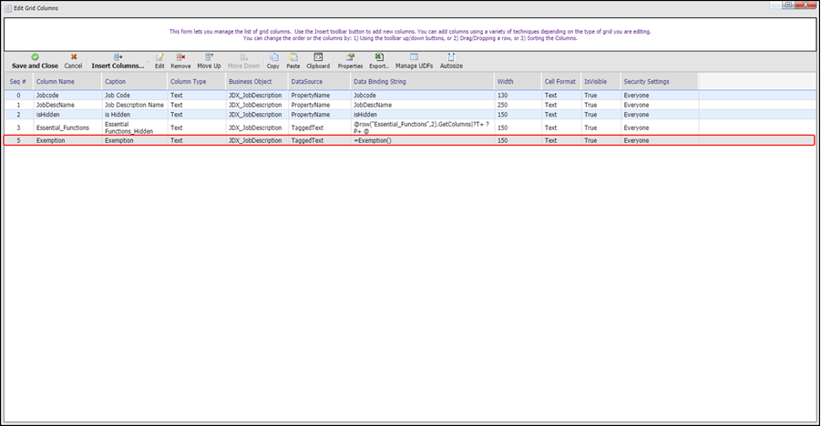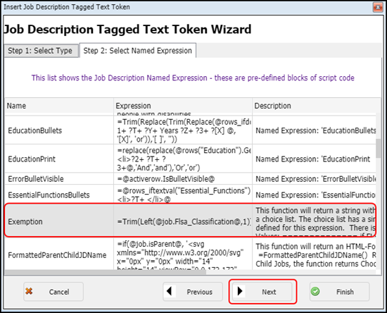 8. Click Insert Columns, and then select Insert using Job Description Token Wizard.