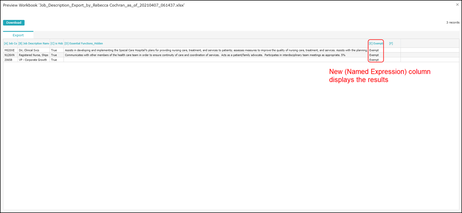 The named expressions displayed in this tab are added from the Admin Tools tab (Data Management → Named Expressions).
