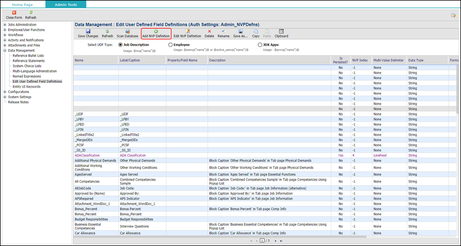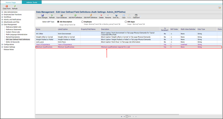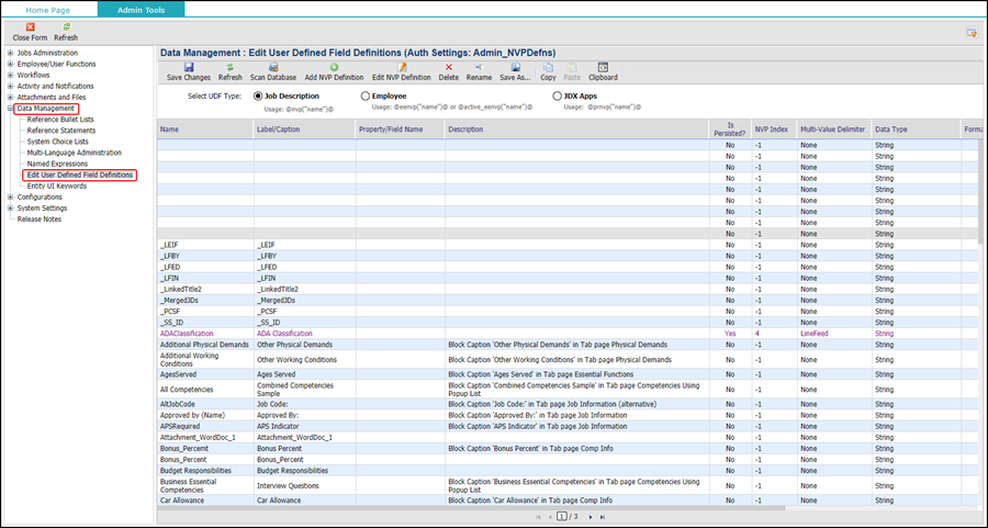 2. Click the Data Management node to expand, and select Edit User Defined Field Definitions.