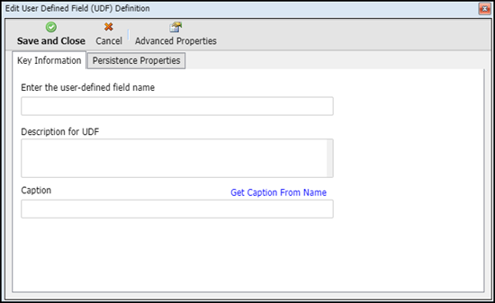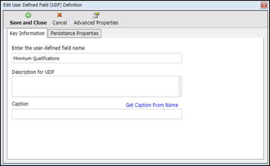 This displays the Edit User Defined Field (UDF) Definition dialog box: