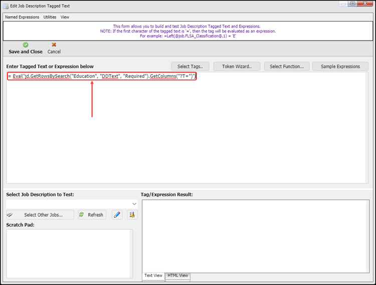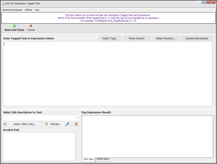 This displays the Edit Job Description Tagged Text screen: