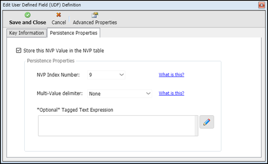 7. Select the Store this NVP value in the NVP table check box.
