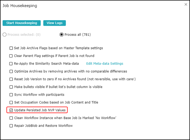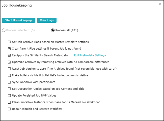 For more information on this screen, refer to the article, “Job Housekeeping Tasks."