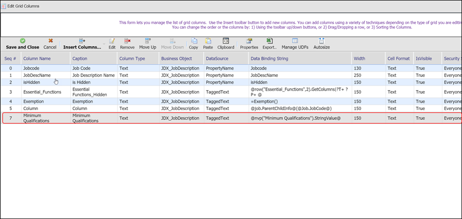 1. Navigate to the Edit Grid Columns screen.