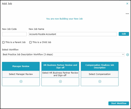 The next step is to choose the appropriate workflow profile and then begin to select participants. In this example, we will choose the Best Practice Job Description Workflow with 3 steps.