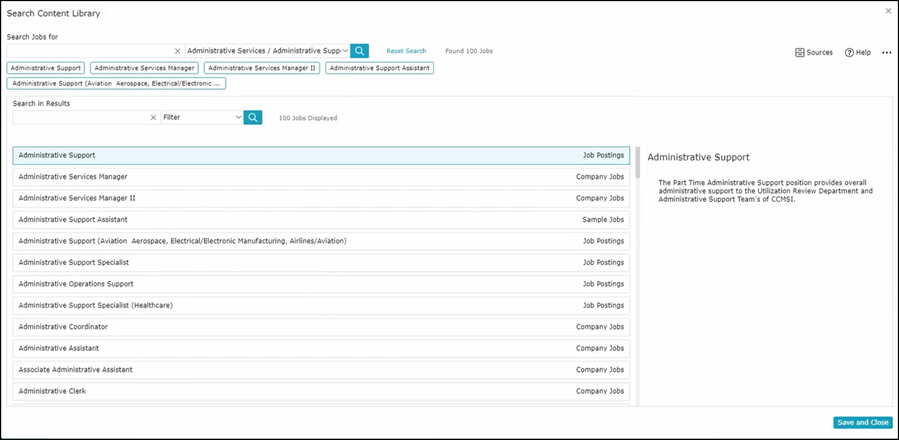 Make your selection, then Save and Close. You will now see a list of job descriptions. Choose the job description that will be your base, then Save and Close.