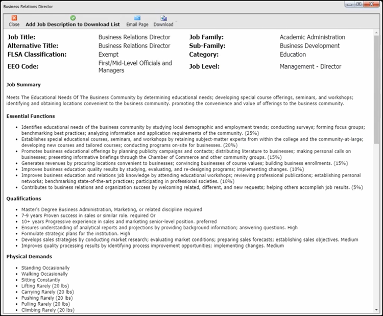 If this is a job description that you would like to see in its entirety, simply select and close. You will see the selected job description on the left side of your screen.