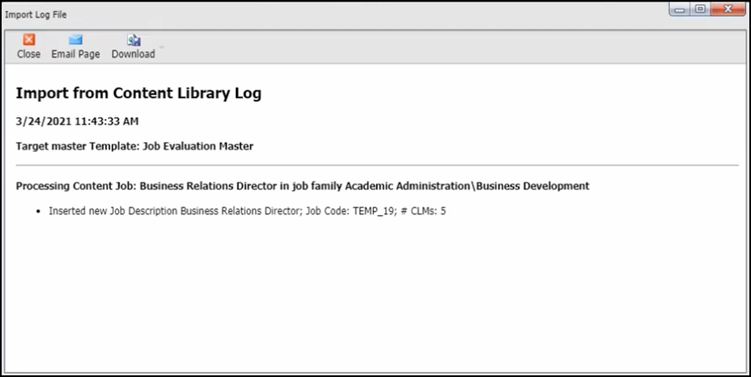 When you return to your job library, you will be able to search for your newly added job description. It is important to note that the information imported from the content library is dependent upon your master template configuration. For more information, please contact our support team.