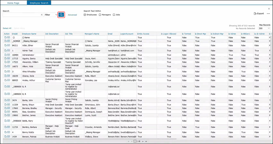 If your screen is not populated, you will first need to click on the magnifying glass to populate the employees.