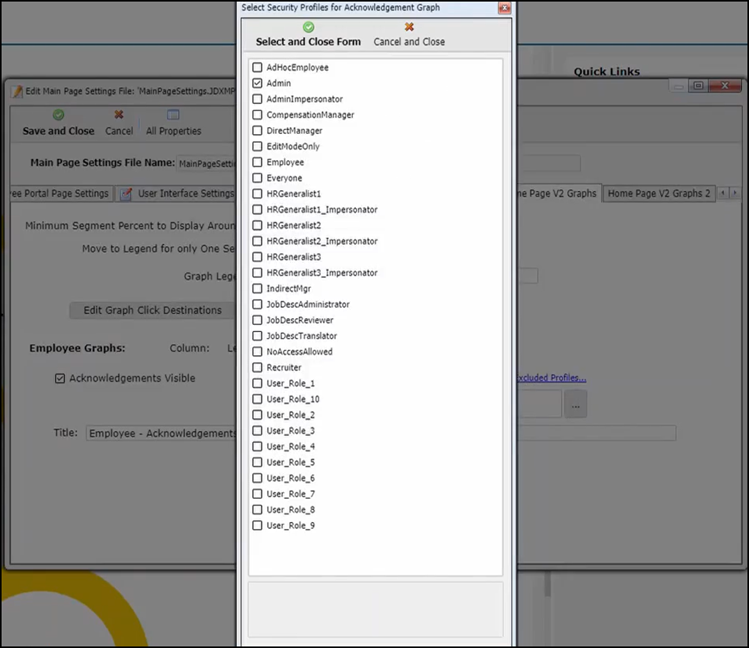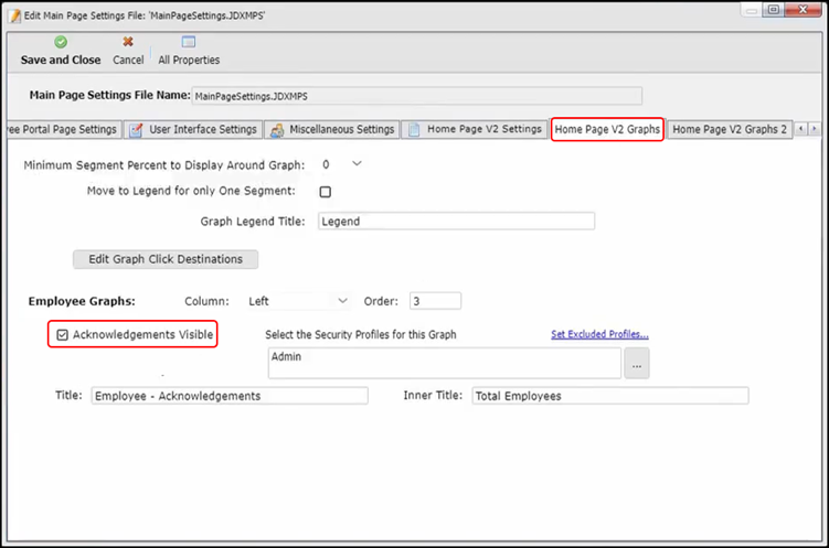 Here, you can see the Employee Graph is checked for Acknowledgements Visible.