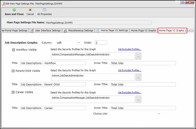 On the next Home Page V2 Graphs 2 tab, you can see the Workflow graph, the Parent/Child graph, and Career graph for all visible.