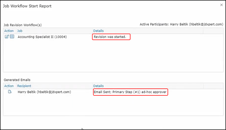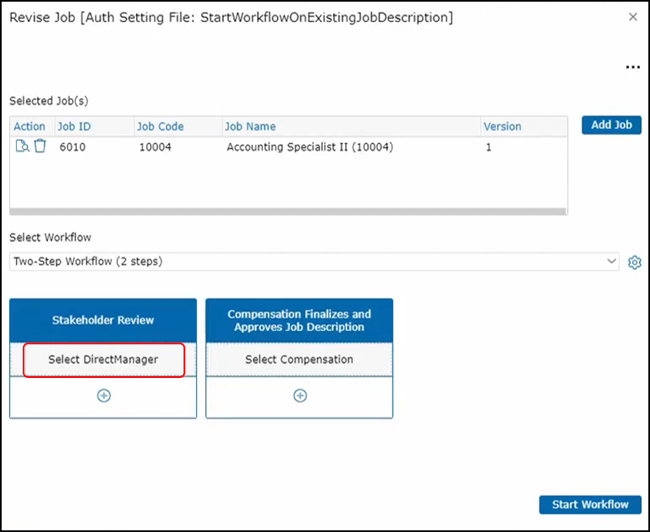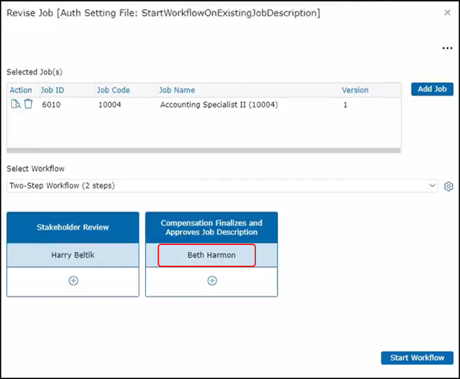 Once we do this, we can go ahead and start the workflow for this job description by clicking on Start Workflow.