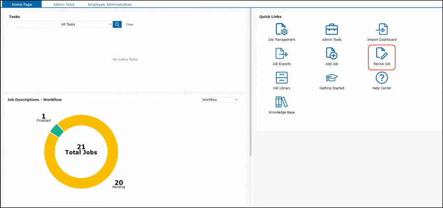 Now let's think about revising job descriptions using JDX. To do this double click on the Revise Job icon on your home page.
