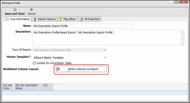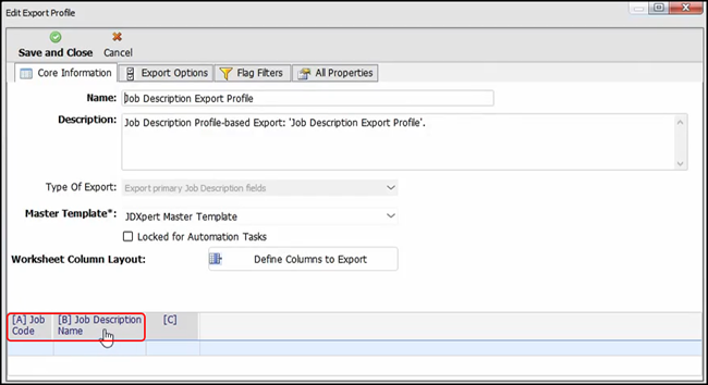 Right now, we are only exporting two columns -Job Code and Job Description Name.