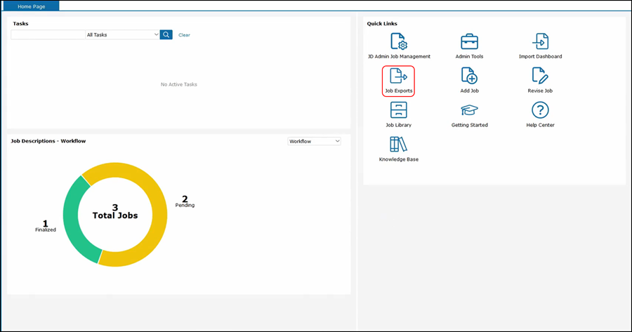 For this lesson, we are going to export the job descriptions that we have in the system. To do so we are going to click on Job Exports.