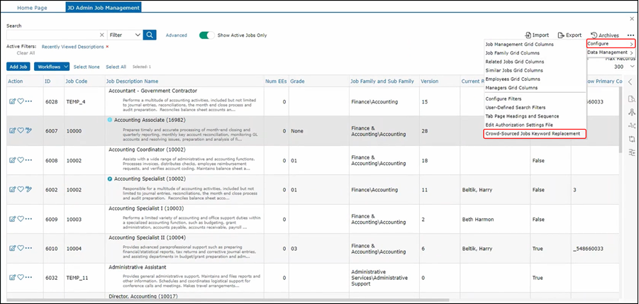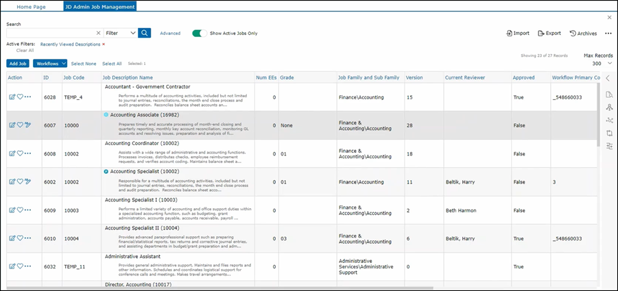 To do that, let's come out of the job description and go back to the Job Description Management. Go back to the home page, JD Admin Job Management.