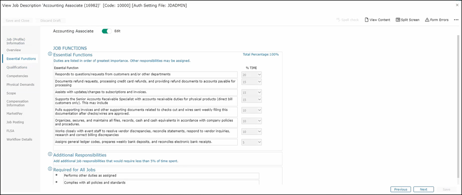 To see what this looks like, let's open up a job description and look at the Essential Functions.