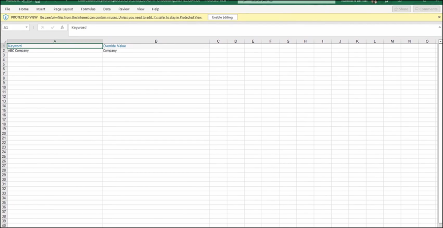 Enter the new keyword there, I'll use ABC and override it again with Company.