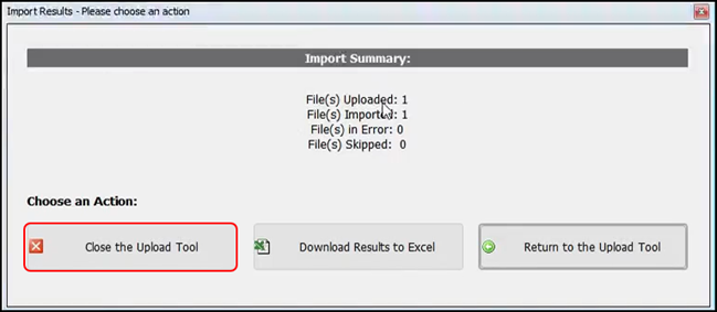 When uploaded, Close the Upload Tool.