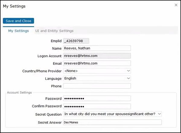 This will show some basic information about you including your employee ID but also UI and entity settings.
