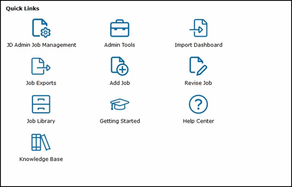 By clicking on any of the Quick Links, you can quickly navigate to where you need to be. Most of the time will be spent in JD Admin Job Management. This is where all of your job descriptions are stored. You can search or filter for your job descriptions to find exactly what you're looking for.
