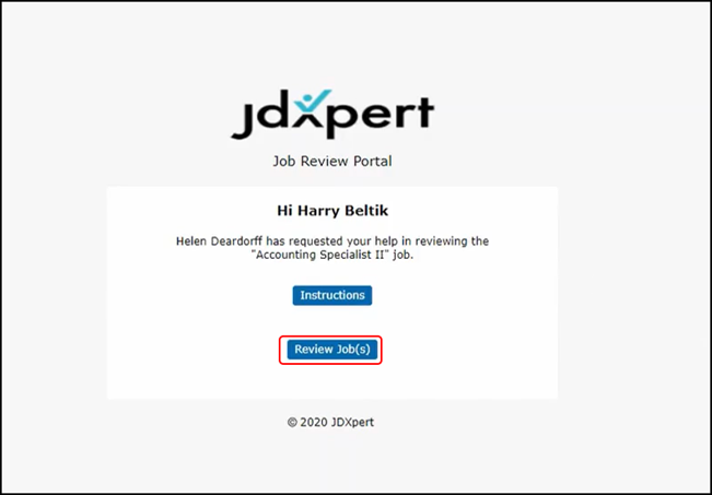 By clicking on the link in his email, he will be brought to a job review portal.