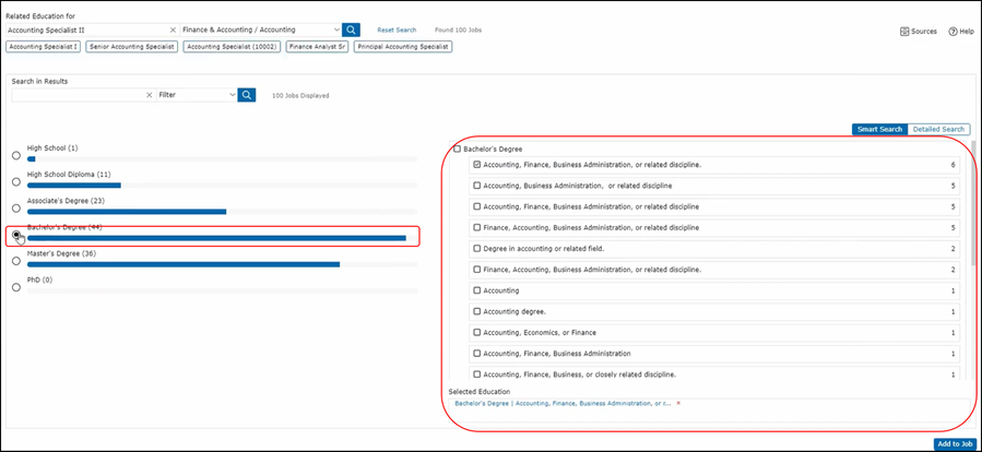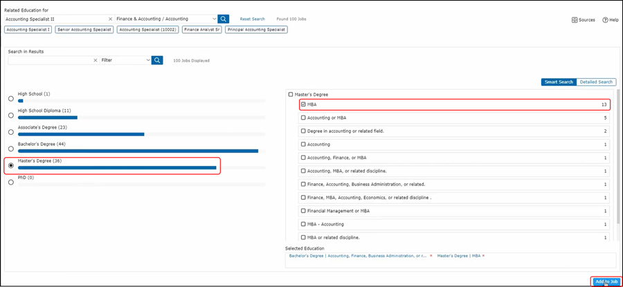You will be presented with a histogram that will show you the breakdown of education level typically associated with this job description.