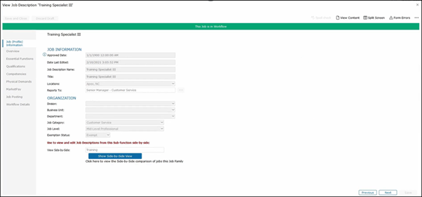 If you have a job description that is in workflow and you click on the Job Tasks, you can view the Workflow Details.