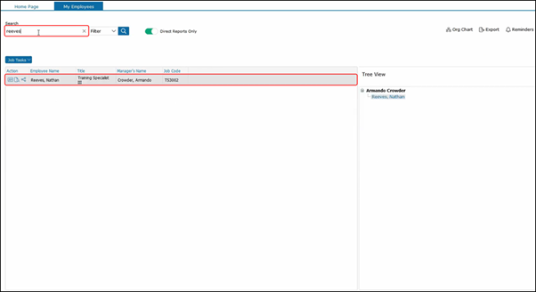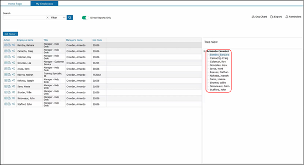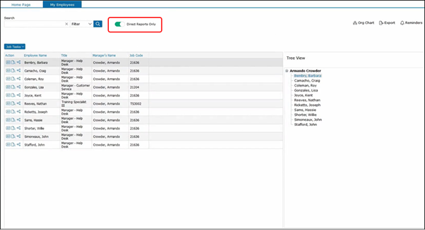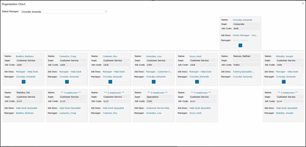 Or you could use the Filters to filter through a list of employees that you would like to view. We have the Organization Chart where you can view your direct employees.