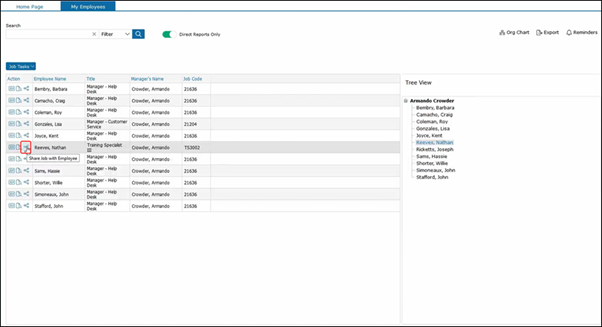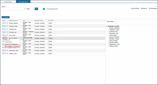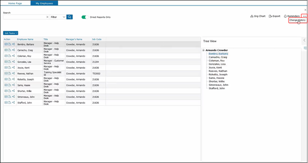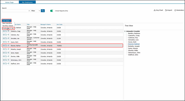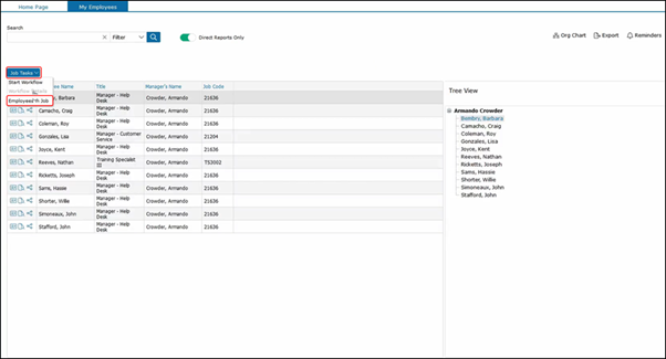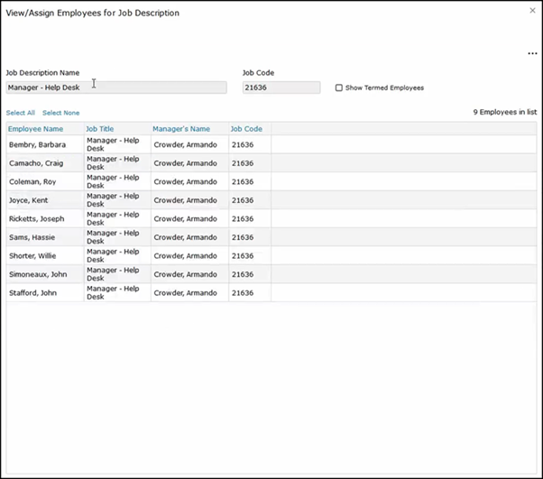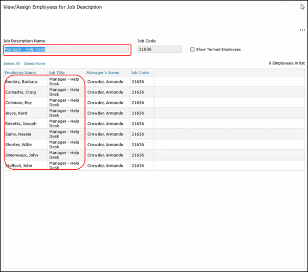 As you can see, we selected Barbara and she has a Manager Help Desk job description. This pulls up all the employees with the Manager Help Desk job description to see other job descriptions.