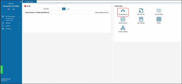 Let us take a look at the My Employee icon in the Quick Links section.