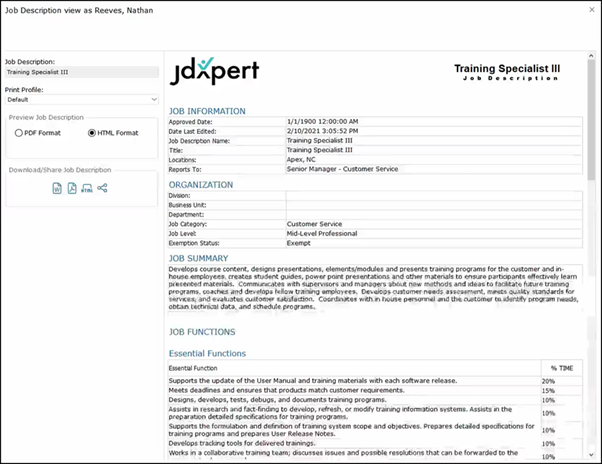 Click on the x at the top-right corner to close out of this dialog box. To view the job descriptions as an employee, you can also use the tree view on the right-hand side.